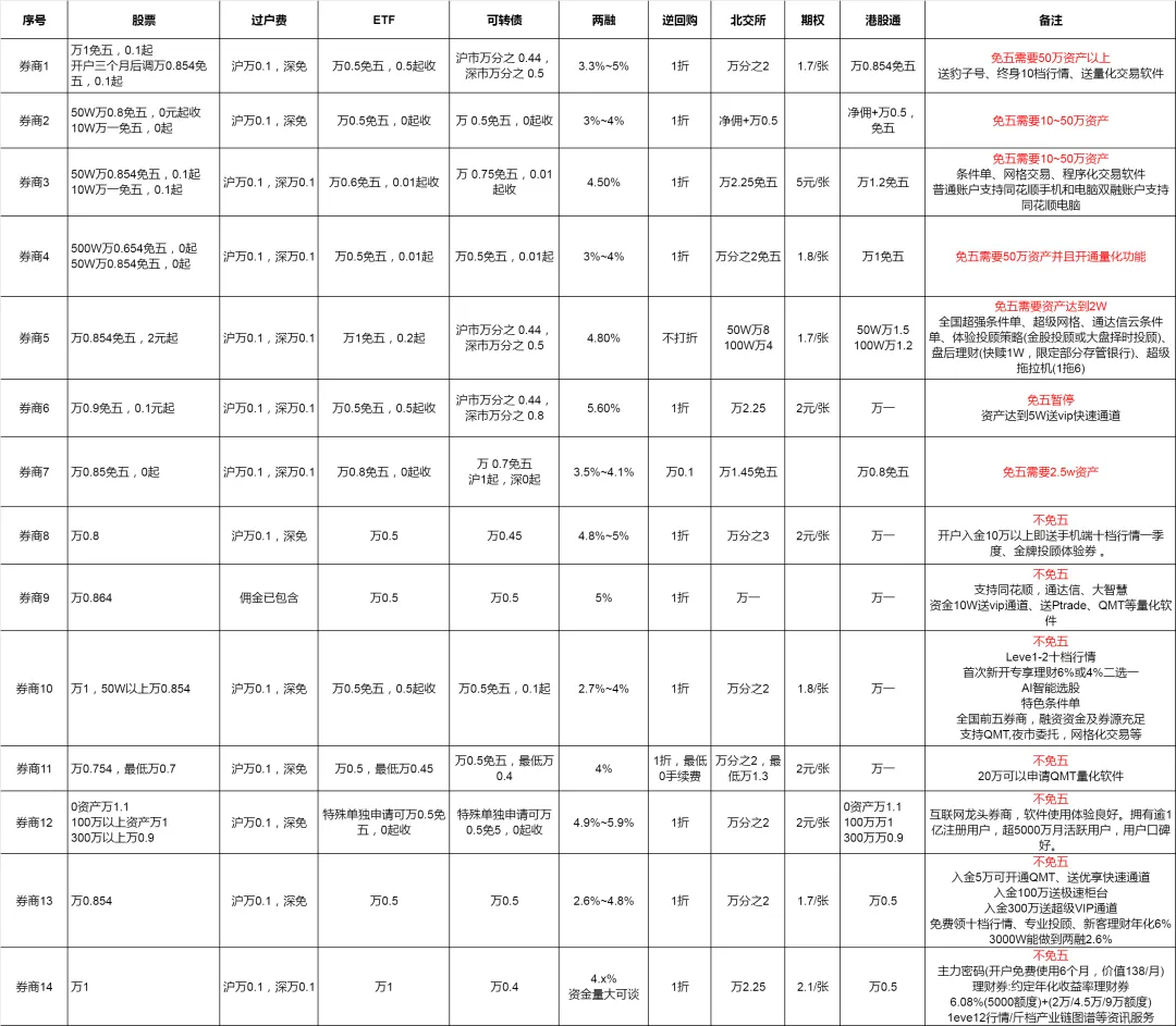 备注:免五需要资产达到50W