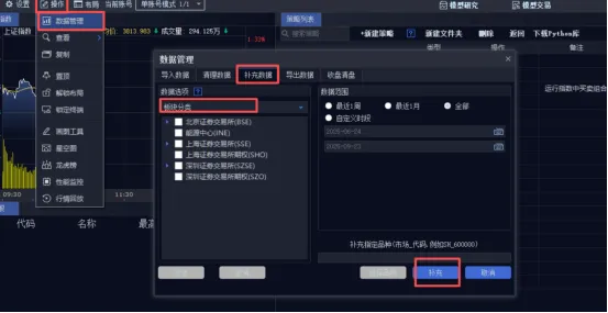 初次安装 miniQMT 时,本地并没有预置板块数据,因此我们需要先下载相关数据才能通过接口进行调用。这一步可以通过打开 QMT 客户端来完成,具体操作方法如下: