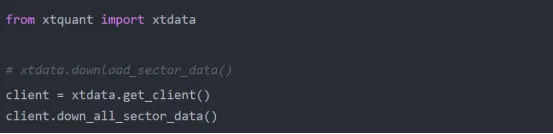 重要提示:官方文档中推荐的下载方法是 xtdata.download_sector_data(),但在 xtquant 250516.1.1 版本中,直接调用该接口可能会导致程序卡死(数据虽然会下载到本地,但进程会一直阻塞不返回)。