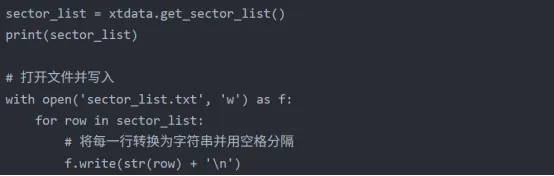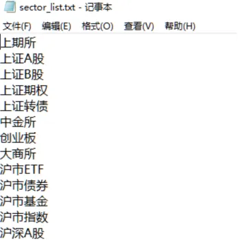 下载完成后,我们可以通过以下代码查看当前可用的所有板块分类: