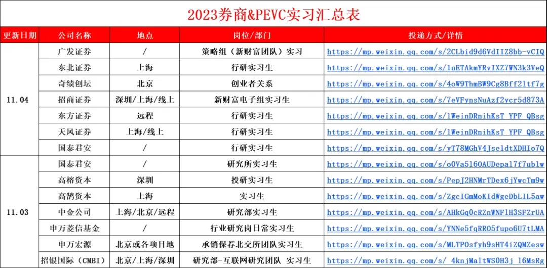 现在是各大券商投行实习申请黄金期