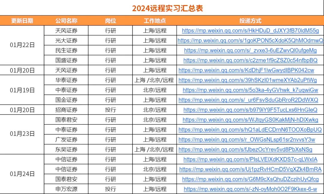☛ 2024券商投行实习信息(散招实习)