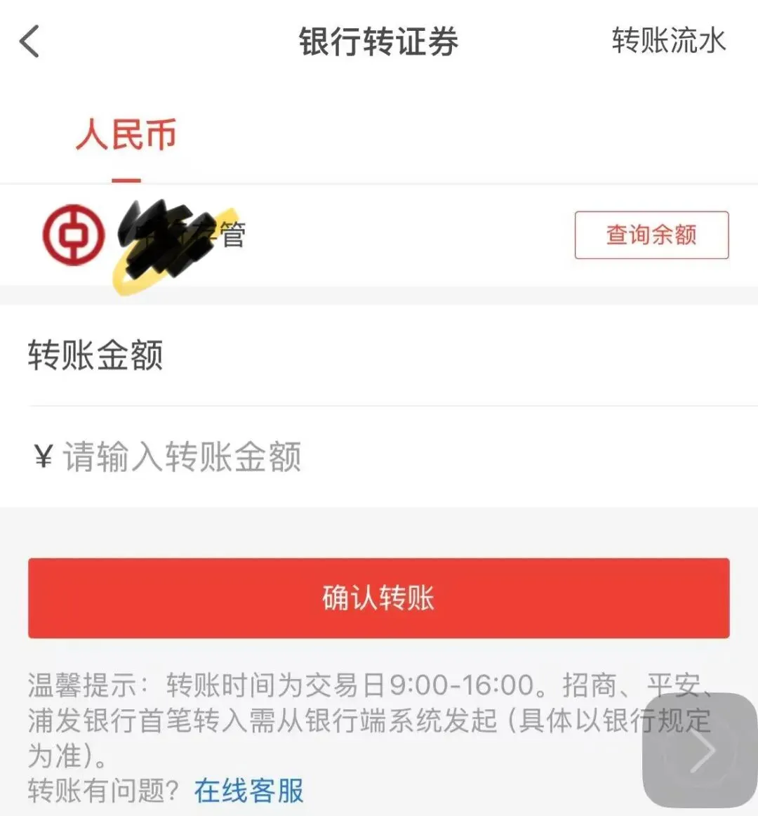 来到银行跟大堂经理交待清楚要办理电话银行动账版,用来做B股银证转账用,大堂经理一脸蒙圈(内心独白:说的啥呀这是),于是我又说了一遍自己的诉求,被告知没办过这个业务,就在我跟他费力沟通的时候,旁边一位女工作人员过来说:就是你要开通B股银证转账功能是吧?我连忙答:是的是的,你是王行长是吧?(因为下午打电话到银行网点询问过这个业务,且当时的工作人员不清楚这个业务,告知了王行长的电话,最终是王行长告知的要带红章协议来办理。)王行长说:是的,你到这里排队吧。王行长手同时指着大堂的自助办理机器前的长队。轮到我办理时,指导操作的工作人员也一脸茫然,不知道该怎么处理。我赶紧把王行长喊过来,让他们沟通清楚操作流程——毕竟我自己也一头雾水!😭他们一顿沟通后,那位工作人员貌似懂了,于是给我办理,一顿操作后告知办理好了,让我退出银行手机APP再重新登录,如果能登录就OK了,我一试能登录,以为办理好了,时间快下午5点了,于是赶紧联系券商客户经理问营业厅还有没有下班,她告知我说她这边可以帮忙线上重新触发之前的失败流程,让我等结果通知,于是等呀等。。。