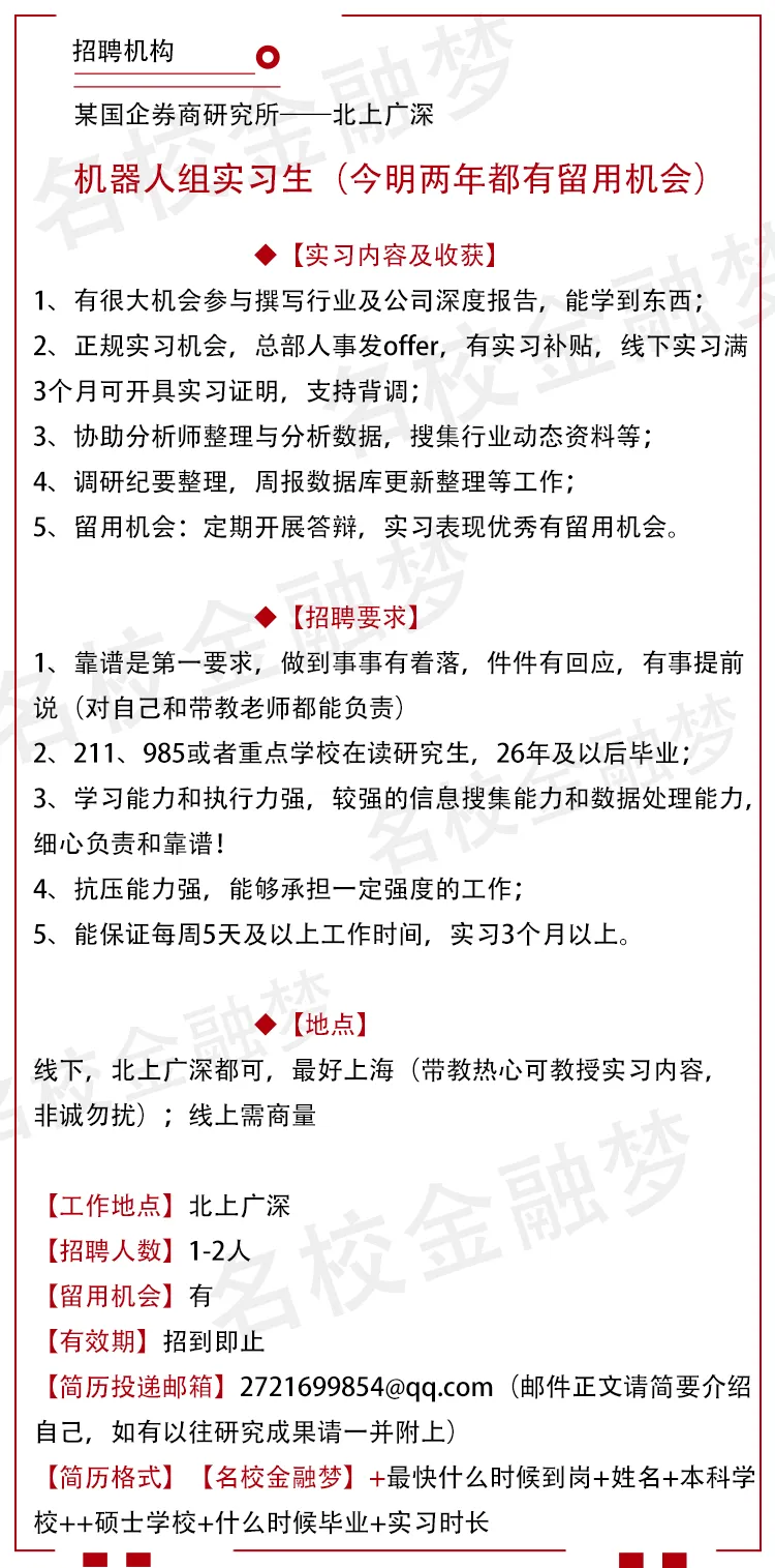 (01/14)上海今日实习信息|某国企券商研究所、国泰海通证券研究所