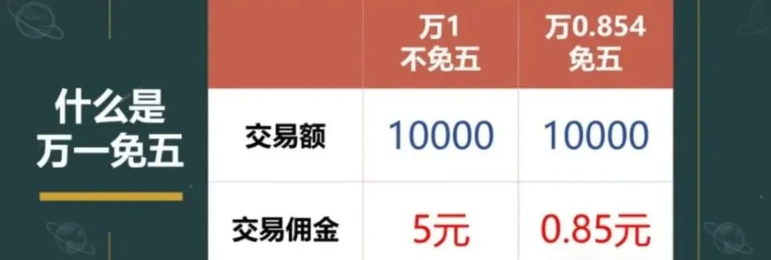 这个万分之2.5佣金,可不是说你买1万就收2.5元,券商行业还有个默认规定,最低收费为五元,按比例不足五元的部分也会按照五元收取,而去掉这个五元的最低收费,就叫免五。