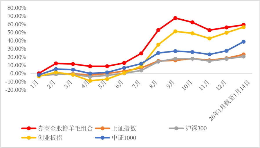 核心要点:简言之,根据券商每月推荐的金股,选择共识度高的标的构建金股组合,每月调整一次持仓,在2025年以来的大部分时间内组合的收益表现可以跑赢主要宽基指数。