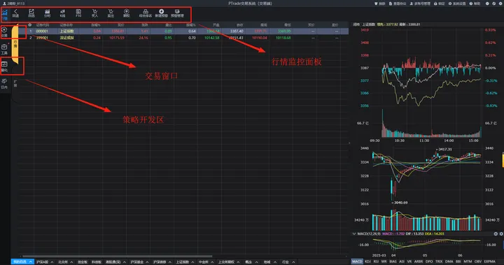 ptrade核心页面采用模块化设计,包含: