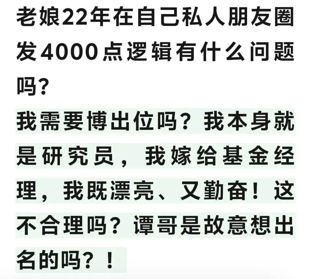 在此次事件的公开曝光中,谭珺本人发布了详细的微信朋友圈截图,内容劲爆且信息量大: