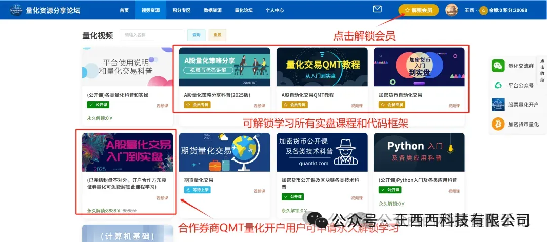 现阶段粉丝开户福利(万0.8,etf万0.5)解锁平台会员,获取所有量化教程与框架(25年末活动,26年1月后下架此活动)