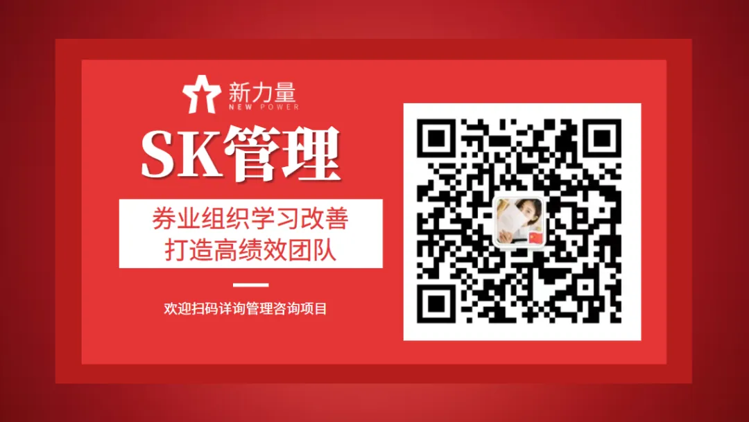 我们通过学习改善(SK)型组织设计方法,训练大家形成更具系统的管理体系,辅导方法落地到一线管理实践中,期待与各位优秀的券业管理精英结伴而行。
