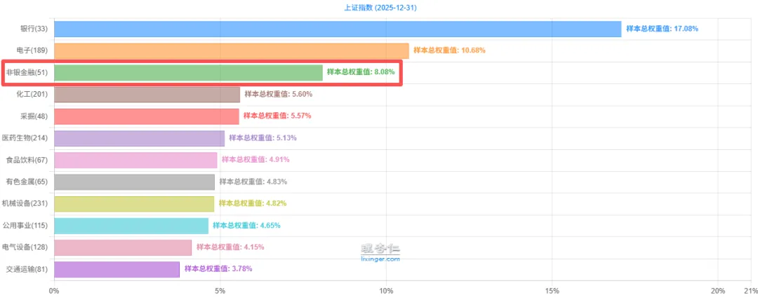 券商板块占上证指数权重约8%,占沪深300权重约10%,