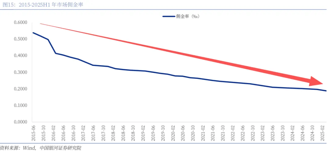 一方面,我们股市的体量已经足够大的,成交量的天量增长,足以让券商在费率下降时“以量补价”。