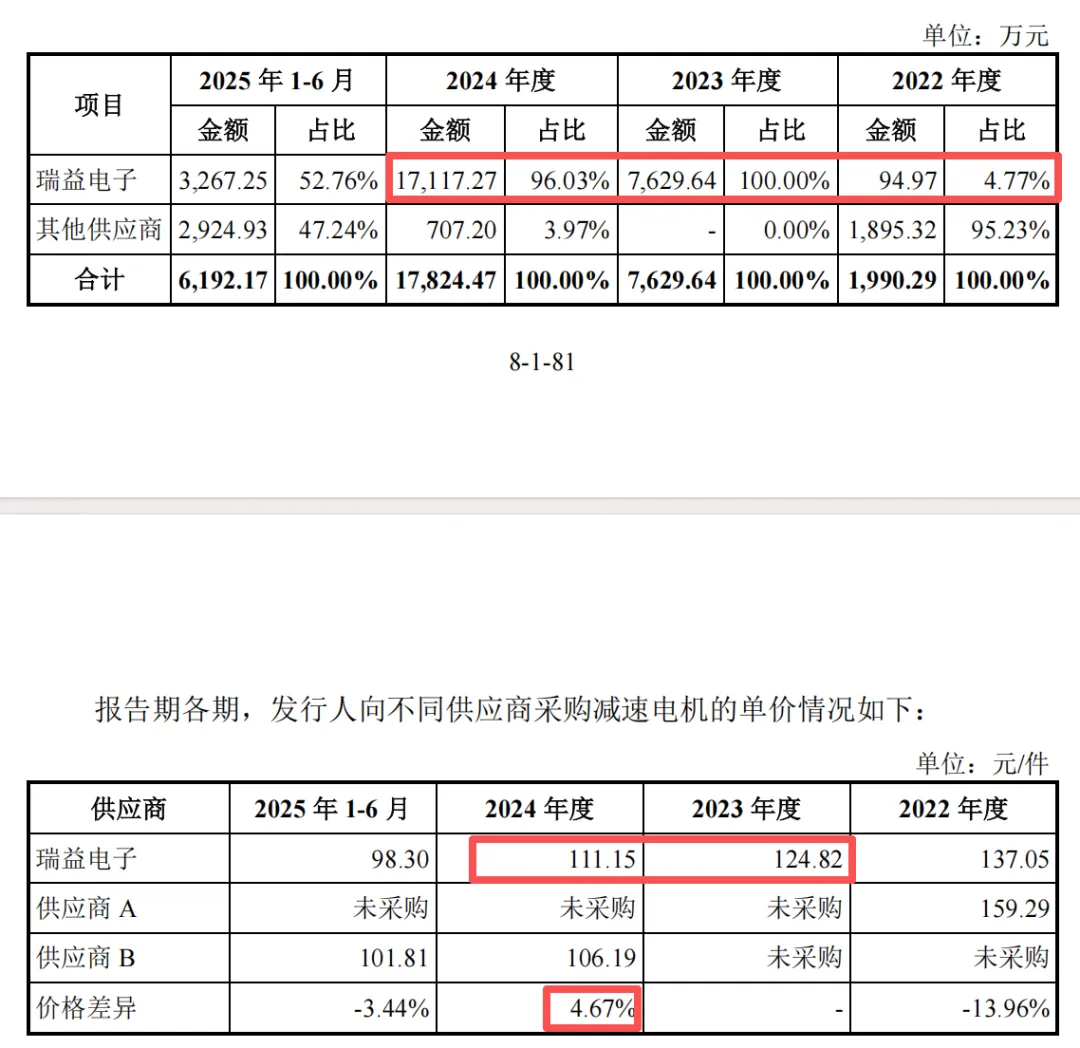 独家依赖的局面直到2025年才突然反转,惠康科技对瑞益电子减速电机的采购额断崖式下跌。终于忍无可忍,发现这款量身定制的电机根本就是个中看不中用的花架子,关键时刻掉链子掉得太离谱?