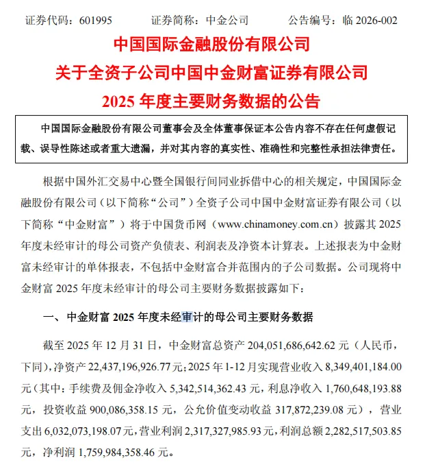 行业高景气度同样传导至资本实力层面。截至2025年末,中金财富总资产达2040.52亿元,较上年末增长11.25%;净资产达224.37亿元,较上年末增长16.57%。