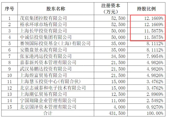 申港证券股东及持股情况,裕承环球与茂宸集团并列第一大股东