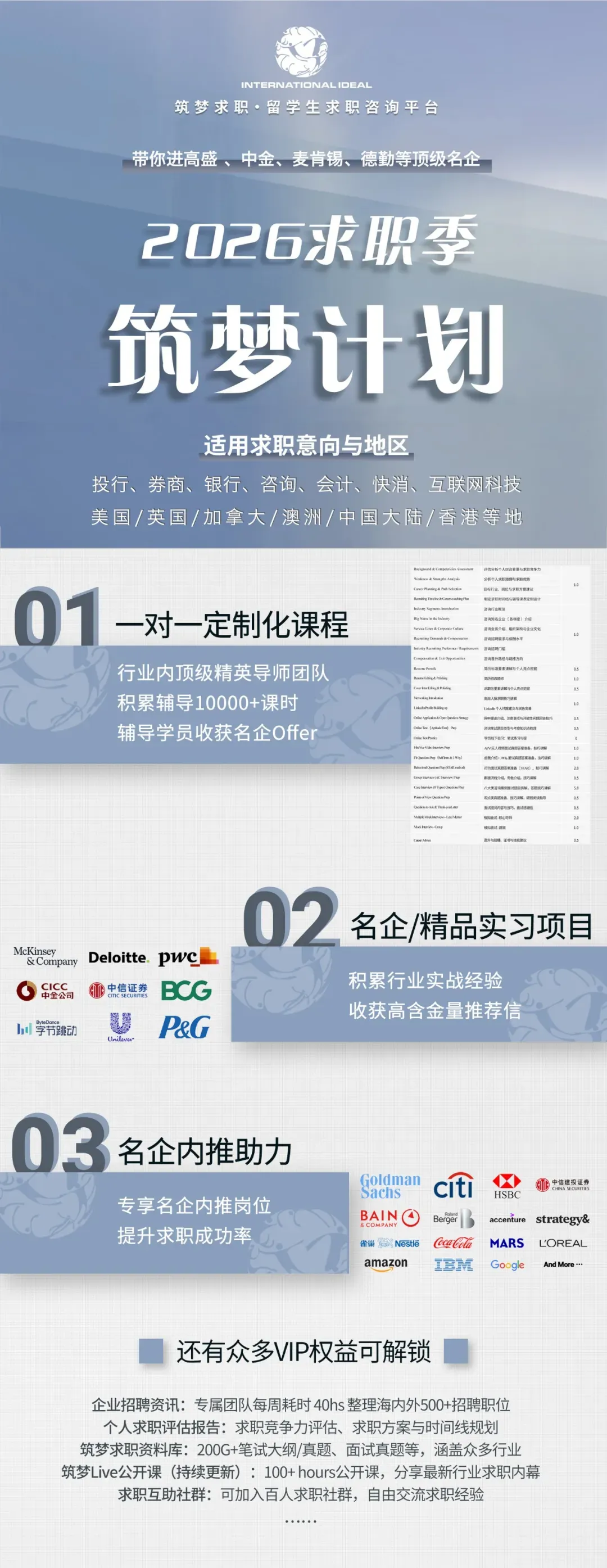 筑梦 INTERNATIONAL IDEAL(2014年成立并注册于美国),是北美最早成立的留学生求职咨询平台之一,目前覆盖全球留学生超过80万人。我们荣登“福布斯华人精英TOP100”以及“胡润百富创业领袖”榜单,至今已帮助 8000+ 学员获得来自Goldman Sachs、McKinsey、Deloitte、P&G、Google、Meta等名企的Offers。我们的服务包括:求职辅导、背景提升、名企内推、海外游学等;商务合作请联系:Coop@internationalideal.com