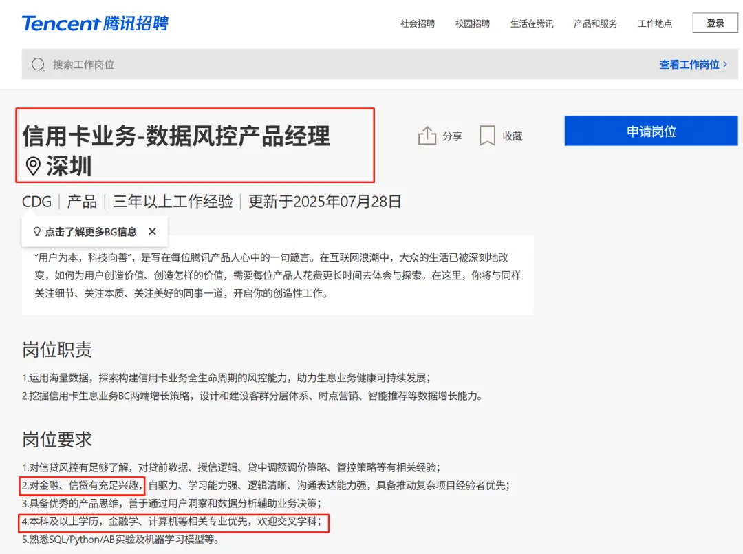 比如腾讯招聘的数据风控产品经理,就优先金融+计算机复合专业的学生,年薪起步就有30-35万。