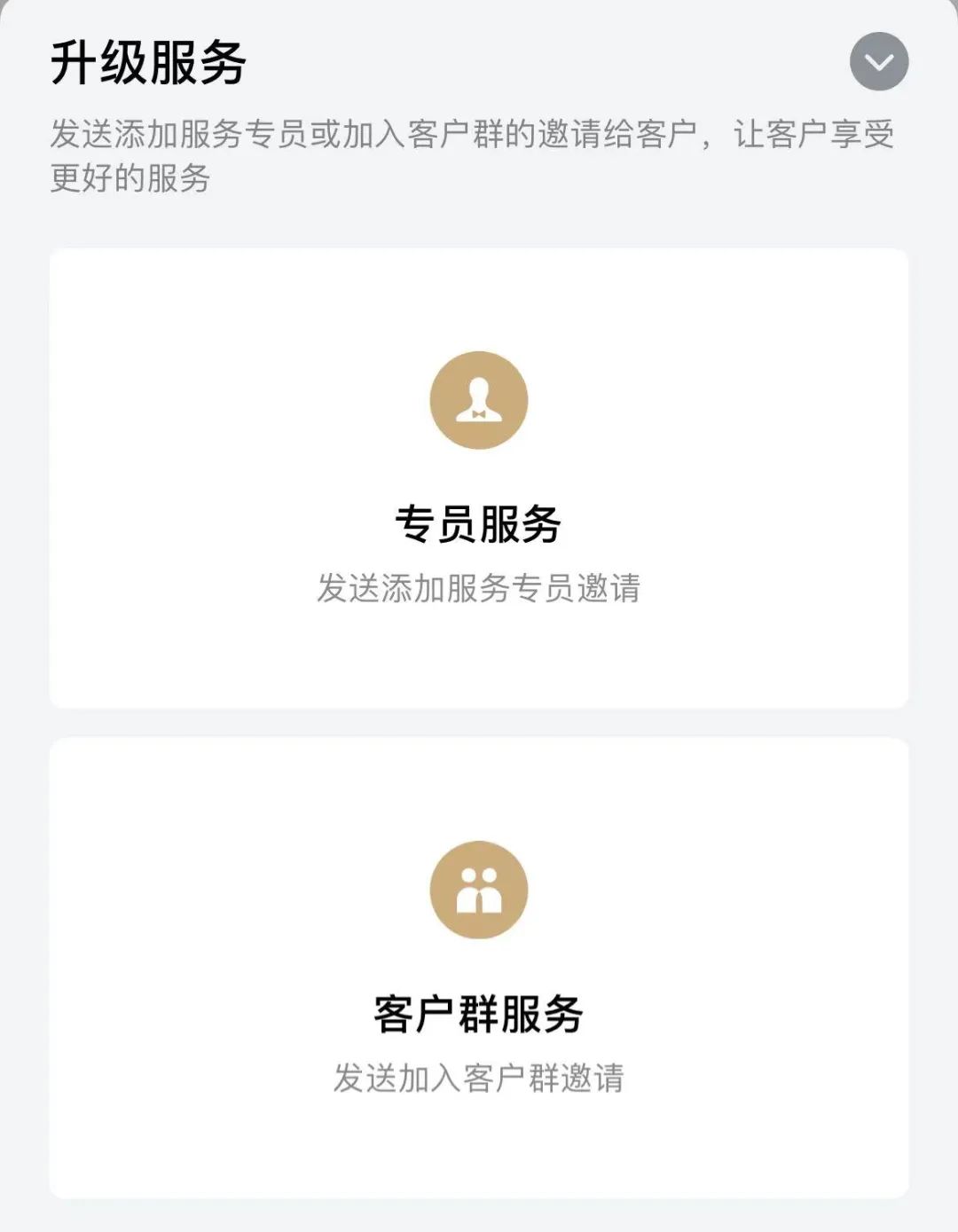 但是在微信客服里面就不一样了,无论客户有没有下单,都可以点“升级服务”邀请客户加微信或者进群,这样可以为下一次的促交做铺垫,也可以增进关系拉进信任度。