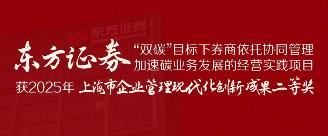 近日,2025年上海市企业管理现代化创新成果获奖名单公布,共计有181项成果被审定为“上海市企业管理现代化创新成果”,集中展现了上海企业在聚焦主业、深化改革创新、加速数字化转型、践行绿色低碳发展、提升治理现代化水平和强化品牌与核心竞争力等方面的路径与成效。东方证券3项成果成功入选,其中《“双碳”目标下券商依托协同管理加速碳业务发展的经营实践》荣获二等奖。