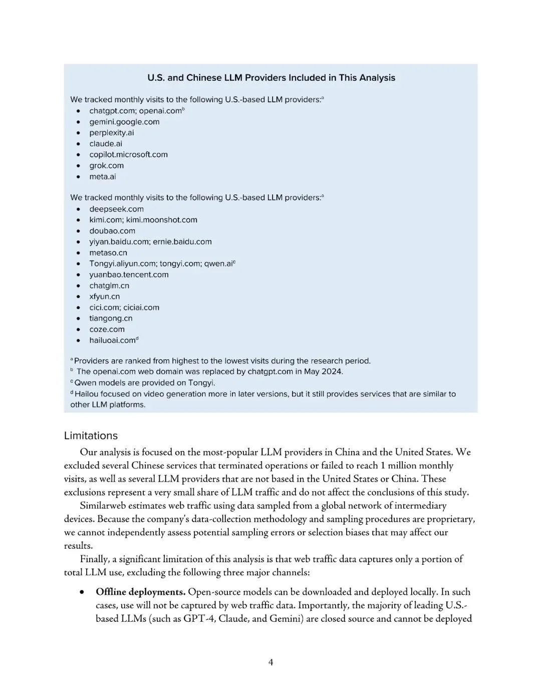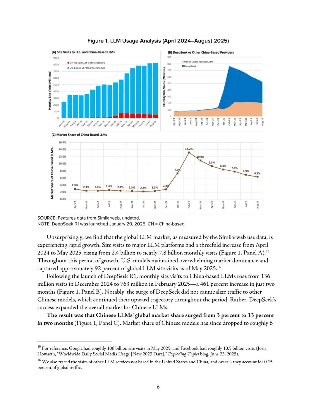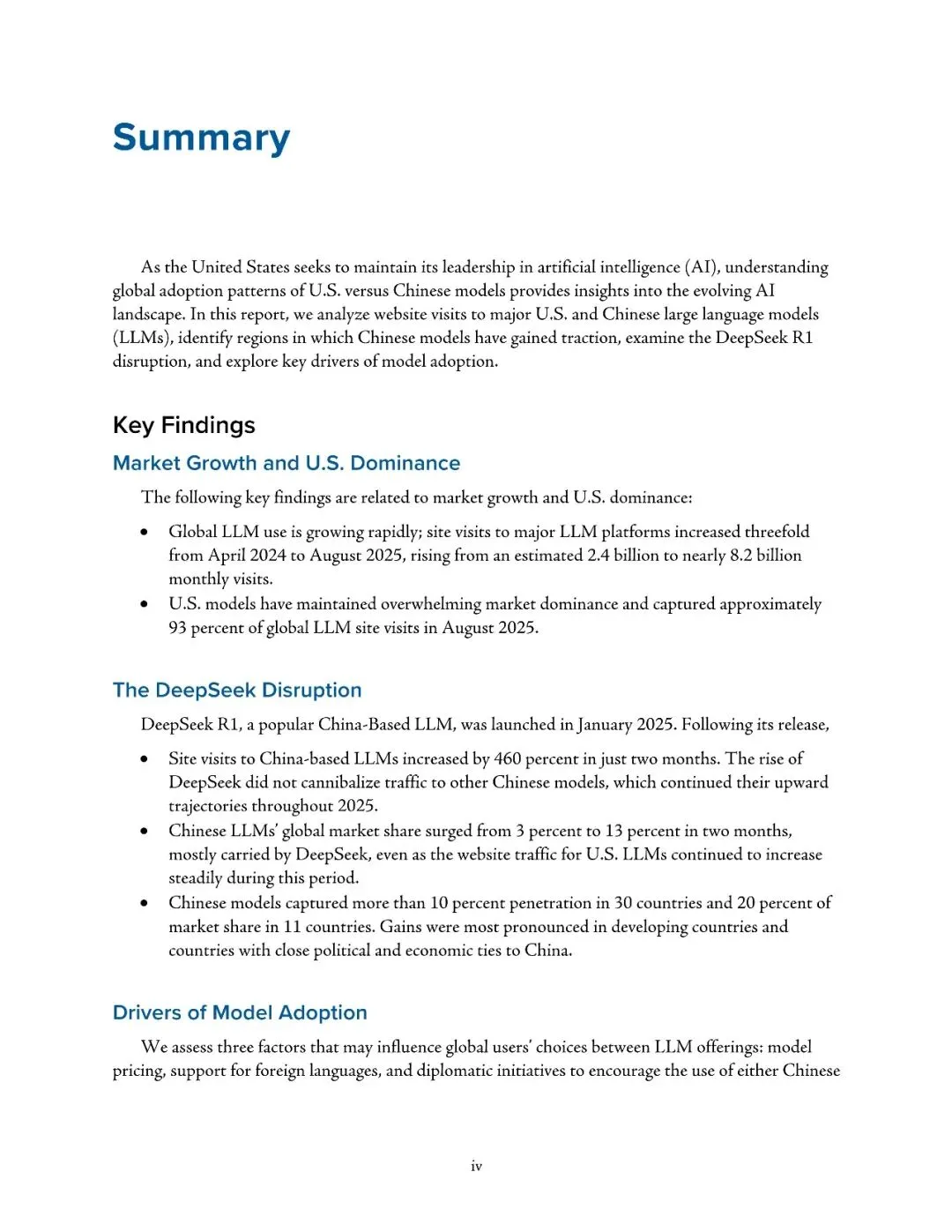 展望未来,这场竞赛的终局将取决于三个变量的演化。首先是性能瓶颈的突破能力:美国模型若不能在GPT-5等下一代架构上拉开代差,其品牌溢价和用户粘性将持续衰减;中国则需在芯片限制下证明工程优化的天花板尚远。其次是商业模式的可持续性:双方目前都在亏损运营,美国依赖资本市场输血,中国依赖财政滋养,谁先实现技术-商业闭环谁将掌握主动权。最后是生态锁定效应的构建:当前极低转换成本是最大不稳定因素,谁能通过企业级解决方案、行业定制模型和开发者工具链创造真实壁垒,谁就能将流量优势转化为持久份额。DeepSeek现象证明,AI市场的"赢家通吃"规律尚未固化,92%的市场份额对美国而言既是荣耀也是风险,任何一次技术误判都可能引发类似两个月内10个百分点的份额迁移。这场竞赛远未到终局。