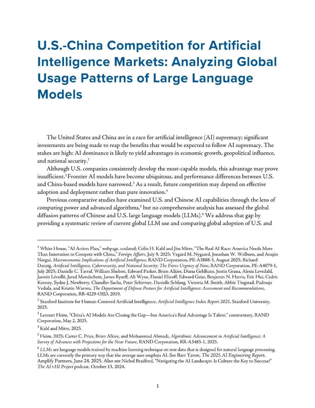报告名称:2026年美中AI市场竞争态势与DeepSeek的突围(文末附原文PDF) 出 品 方:兰德智库
