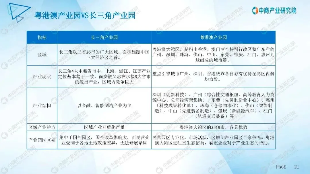 粤港澳大湾区产业布局港澳地区在大湾区中起到促进向外发展、加强对内融合的作用。其中,澳门积极发展旅游休闲服务业、博彩旅游,同时也担任普与国家交流平台中心的角色。香港作为全球金融中心之一,成为对外开放渠道,担任贸易中心、航运中心等角色。促进向外发展葡语国家交流平台中心旅游休闲服务业博彩旅游澳门加强对内融合国际金融中心对外开放渠道贸易中心航运中心业研学香港中商产大湾区产业园竞争格局年中国产业园区国际高层峰会暨第三届粤港澳大湾区产业发展论坛在深圳召开,峰会主题为"湾区起航.全球未来",