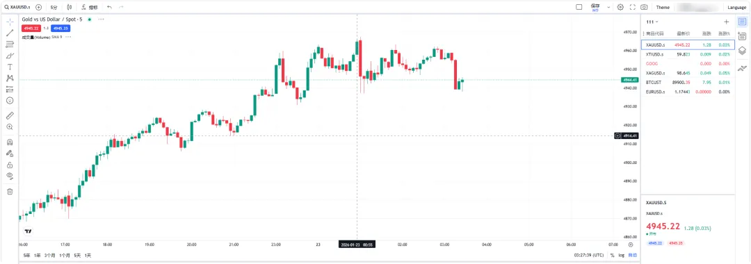 荧幕上的画面 = 行情软件(TradingView等,显示价格走势)