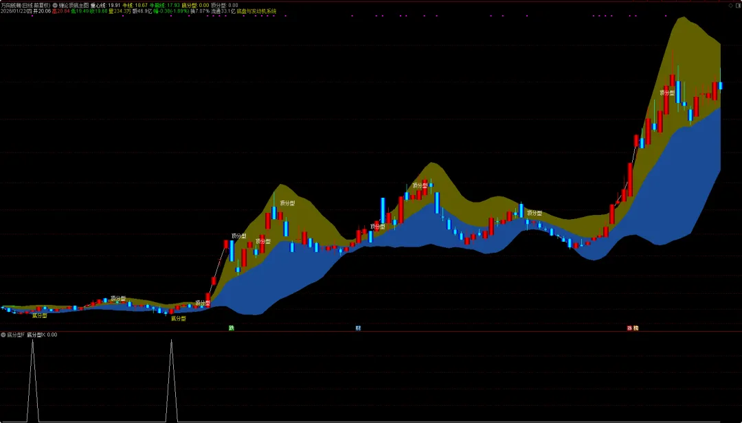 缠论顶底指标是基于缠论分型理论设计的主图指标,核心围绕股价顶底分型结构识别展开,结合重心线、牛熊线等价格中枢及趋势指标,辅以视觉化的彩色K线展示,帮助投资者快速识别股价短期高低点,为买入和卖出决策提供直观参考。