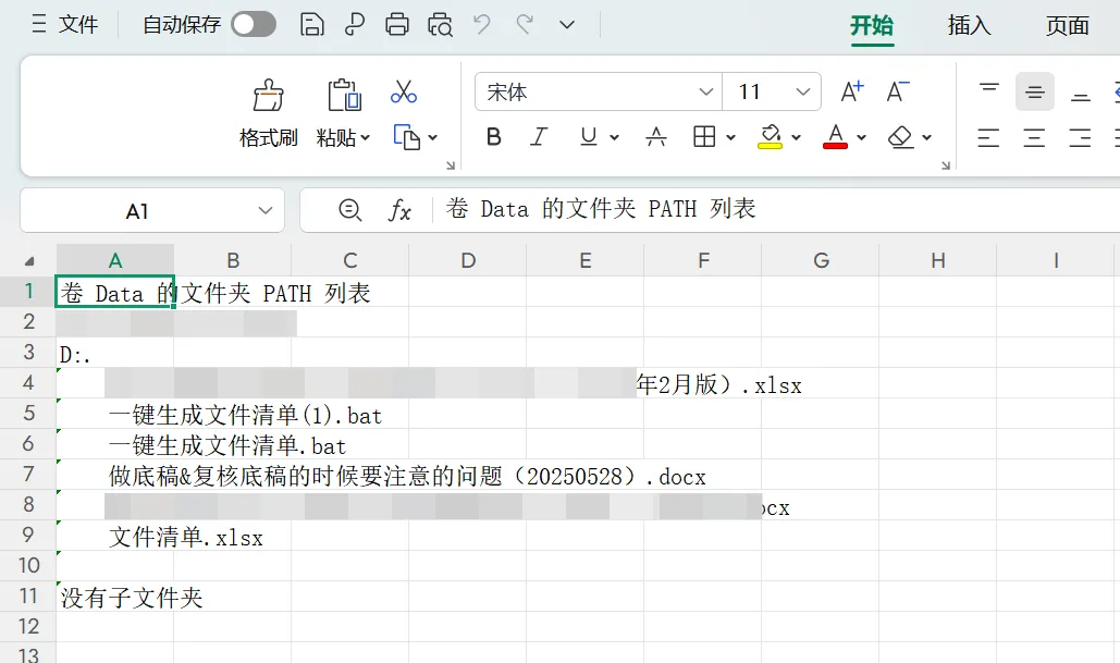 tree /f >文件清单.xlsx