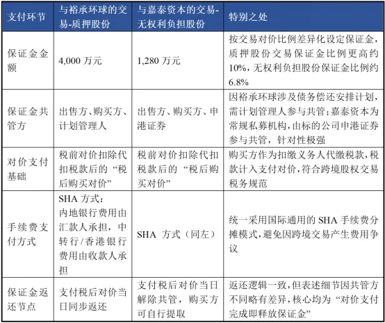 与嘉泰资本的交易:无需质押注销环节,支付税后对价当日即可交付交割文件。