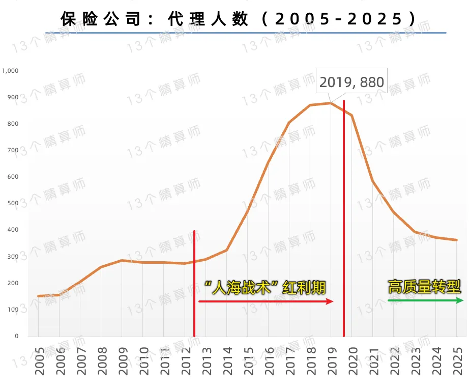如今,6年的时间过去,2025年末,保险公司的代理人数,预计较顶峰减少近60%....