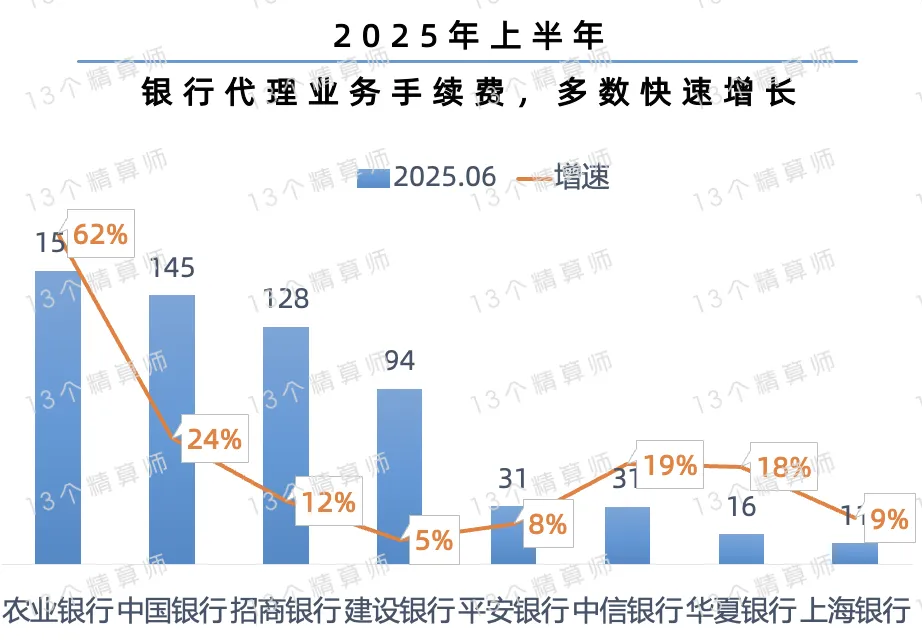 2025年上半年,多数银行的代理手续费收入同比快速增长,详见上图,这背后就有的是依靠代销保险。