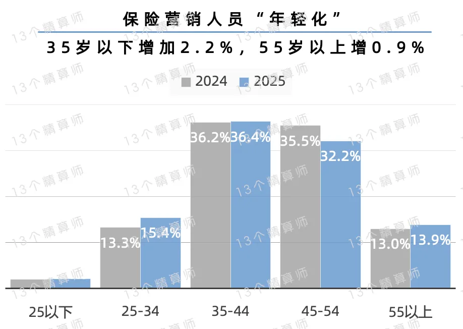 这一点,从最新的《保险中介市场生态白皮书》中,代理人数量年轻化,33岁以下人数增加,高学历人员增加,也能看出来。