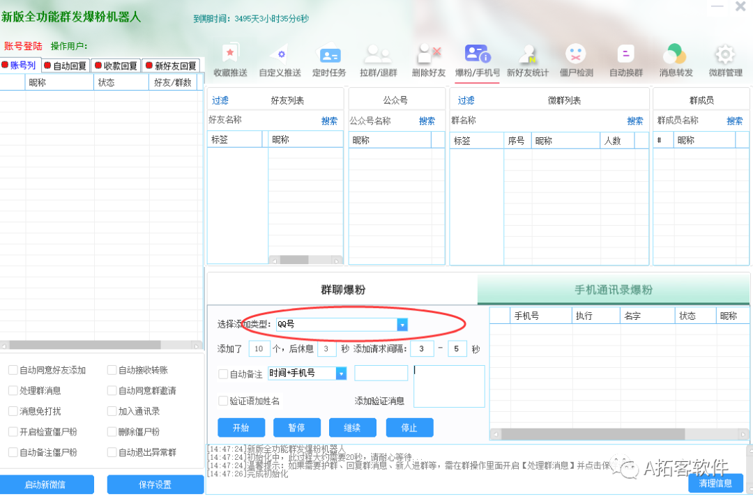 自动微信营销:采集出来数据之后,通过系统一键添加他们的微信,给他们群发消息,快速积累客户,打造私域流量。