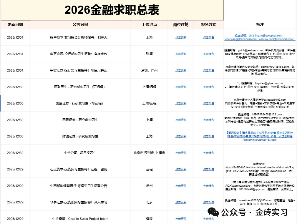 【2026券商&投行实习群】