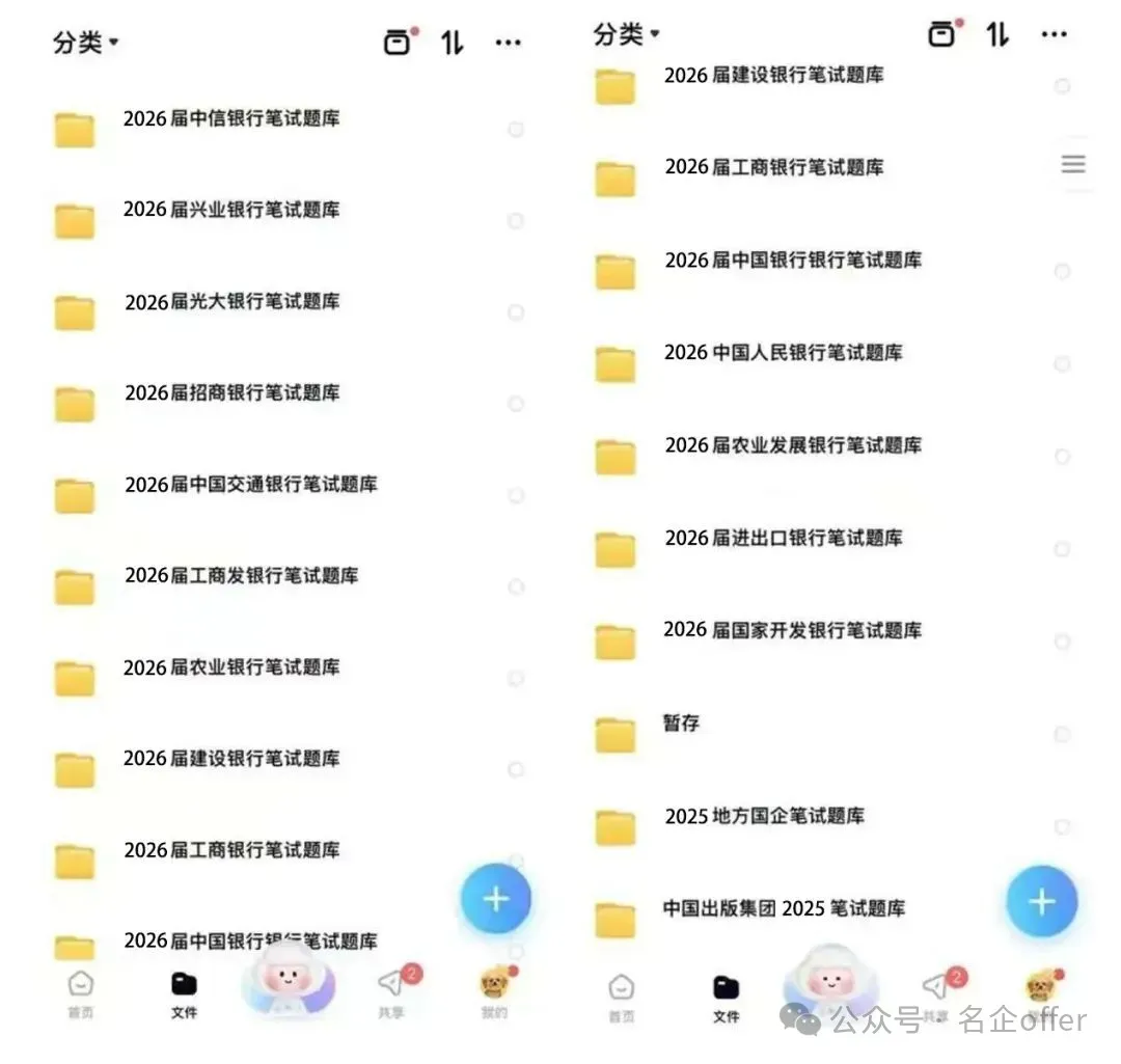01 求职信息专享 全力信息,来自企业工作人员和HR的委托,大量项目负责人/组内成员/继任招募者委托发布的招聘信息; 实时整理更新,暑期/寒假实习信息汇总表、远程实习信息汇总表、春招/秋招校招信息汇总表、国企央企事业单位招聘信息等等 涵盖金融、咨询、四大、互联网、快消、国企、事务所,房地产等等,地域涵盖 国内、英国、美国、澳洲、新加坡、加拿大、法国、德国、意大利等等地区 02 海量求职资料专享 已整理更新的求职资料包括: 行业:外资投行、券商、事务所、公募基金、银行、互联网、快消、咨询、地产公司、国企央企、公职类、事业单位考试资料等等 购买会员可以获得至少50+新版央企笔试题库,200+地方2026年新版国企笔试面试资料;价值12500元+;200+新版四大OT、咨询OT、快消、投行 、外资投行 互联网、地产2026年模拟题库、真题库,价值超1万元;20+新版车企笔试题库,价值1000元;以及更新海外(英国、北美、澳洲、新加坡、欧洲)主流名企在线测评题 公司:瑞银集团、汇丰银行、德意志银行、易方达基金、汇添富基金、博时基金、华夏基金、央行、国开行、进出口银行、农业发展银行、五大行、建设银行、浦发银行、招商证券、申万宏源、广发证券、方正证券、国泰君安、光大证券、MBB、国家电网、中国石油、腾讯、字节跳动、阿里巴巴、华为、四大、立信、碧桂园、保利地产、恒大、万达、戴德梁行等等 其他:简历大礼包、北京/上海落户名单、各行业薪资表...... 《2026年国企央企笔面试资料》