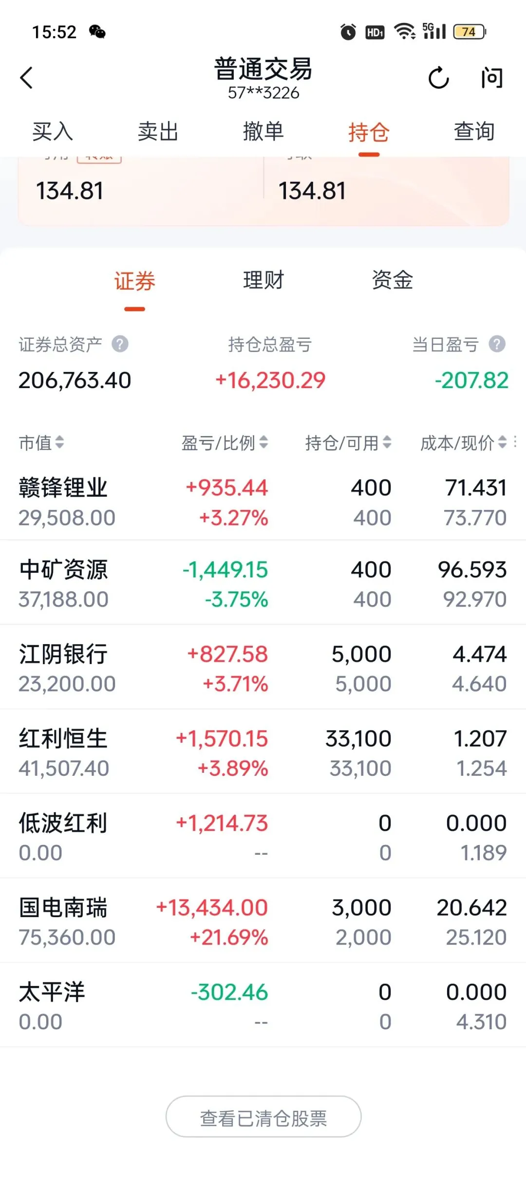 国电南瑞不再加仓,当前为最大仓位。 锂矿仓位冲高做T降低成本。 逢低接回红利低波仓位。 江阴银行逢低增大仓位。