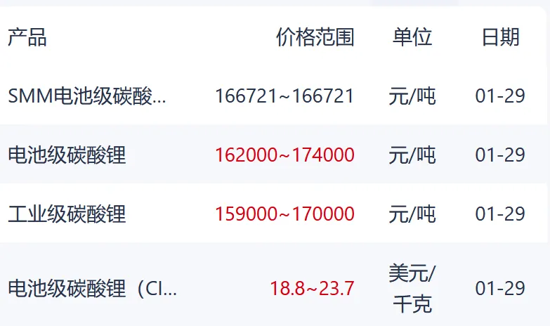碳酸锂期货日均价为16W。