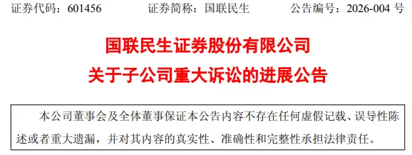 国联民生证券股份有限公司(简称“国联民生”)于2026年1月28日公告称,其全资子公司国联民生证券承销保荐有限公司(以下简称“国联民生保荐”,曾用名:华英证券有限责任公司)就此前证券虚假陈述责任纠纷一案的一审判决提起上诉,近日已收到山东省高级人民法院送达的《受理案件通知书》,案件进入二审程序。