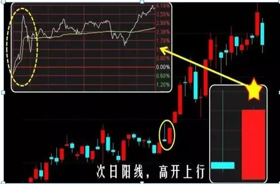 3、仙人指路K线后,次日阳线,高开上行。如果仙人指路K线成立,当日K线尾盘回落可能只是多方主力进攻前的试探,那么次日报收阳线的可能性很大。如果第二天的K线走势能在开盘15分钟内就有所拉升,或者直接高开高走,表现出非常强烈的上攻意图。那么,仙人指路之后,第二天股价走出长阳线的概率会有所增加,并且,后市股价跳空上涨、加速上涨的可能性也较大。