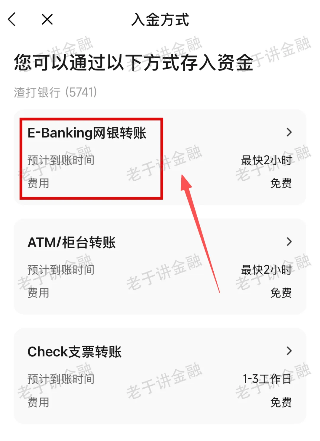 第一步:在券商证券获取入金账户信息(本教程举例复X)