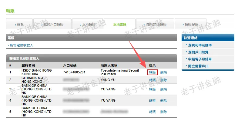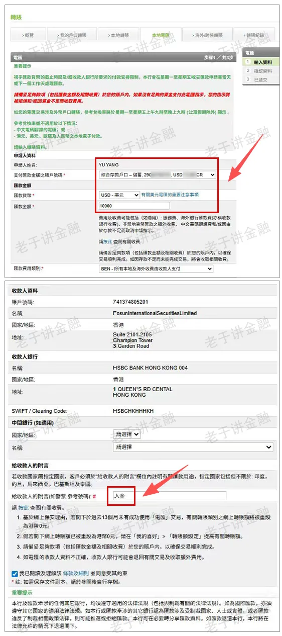 这里要特别注意的一点是:渣打美元转账的话,是不能往别人的渣打账户里转美金的,只能去柜台,非常奇葩的设计。