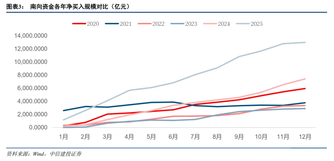 二是南向资金持续流入增添动力。南向资金自2025年初至12月已累计净买入达1.3万亿元,创历史新高。2026年1月南向资金净买入达617.30亿元,环比+196.43%。这种增长源于港股市场的低估值优势以及A股市场活跃后的流动性外溢效应。内地投资者通过港股通积极参与港股市场,显示出对港股长期投资价值的认可,并为市场提供了持续的增量资金。