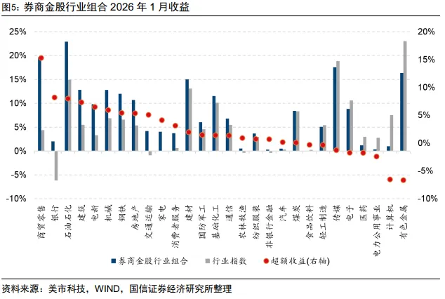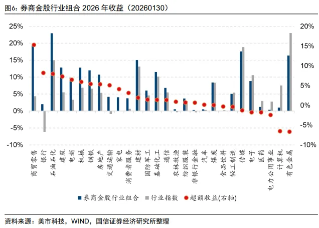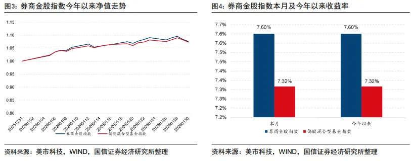 今年以来(20260105-20260130),券商金股指数收益7.60%,偏股混合型基金指数收益7.32%。
