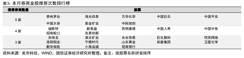 三、券商金股股票池本月特征