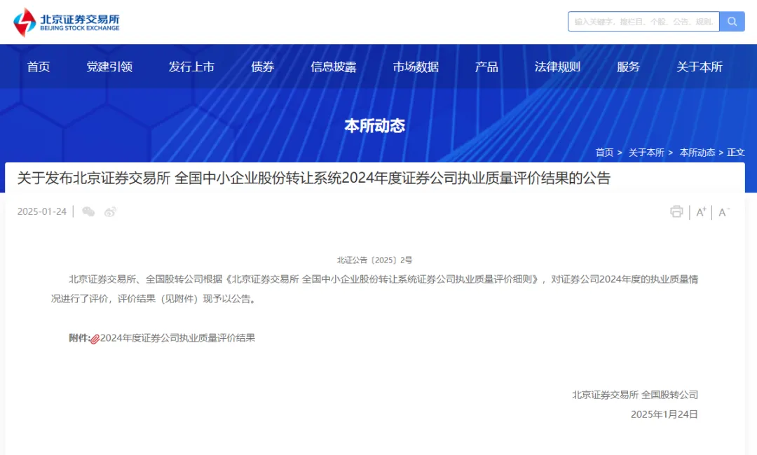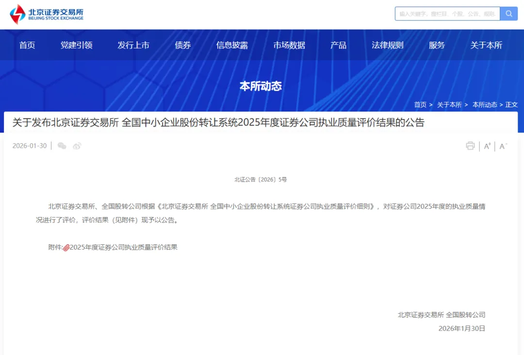 北京证券交易所和全国股转公司给各家证券公司2025年在北交所、新三板(全国股转系统)的干活情况打了分,排了名次。