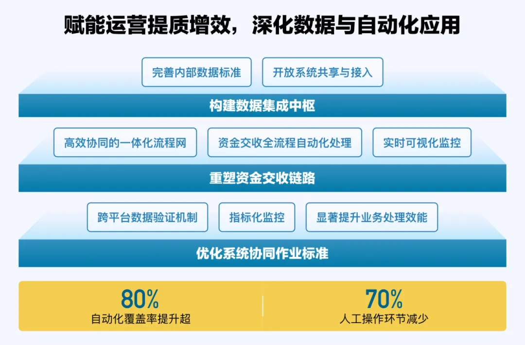 全平台升级后,资管运营自动化覆盖率提升超80%,人工操作减少逾70%,不仅实现运营效率的大幅提升与操作风险的有效压降,更推动业务服务能力实现跨越式跃升。