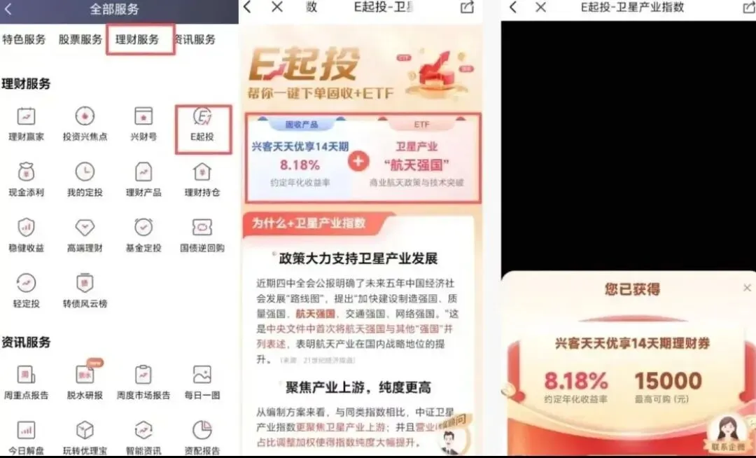 领取路径 :兴业证券APP→首页→更多→理财服务→E起投→点击学习→领取8.18%理财券