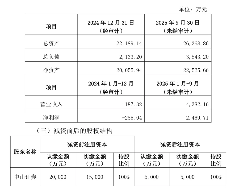 查看它的业绩:2024年亏钱,2025年前三季度赚钱了,但母公司中山证券2025年整体收入和利润都大幅下滑(收入降29%,利润降88%)。