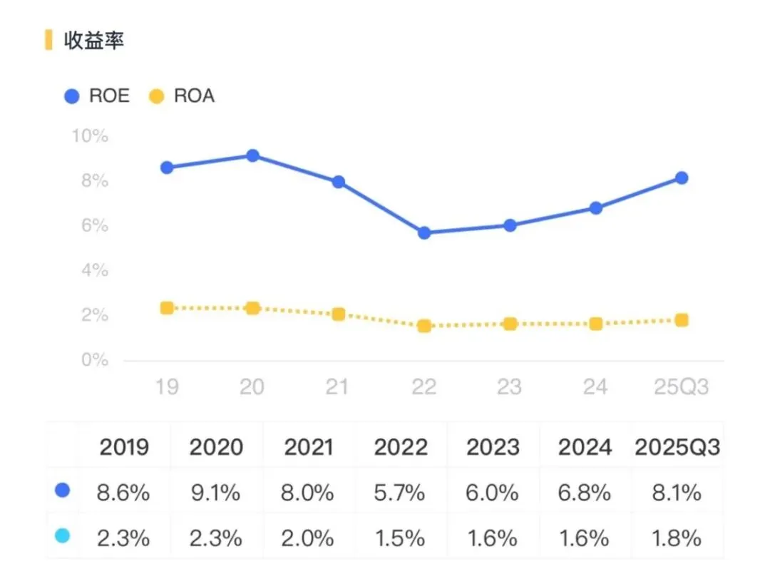 2022年至今,公司的ROE呈上升趋势,由5.7%上升至8.1%。与此同时,公司的净资本充足率也保持稳健,2025年三季度末为190%,显示公司在资本使用效率和风险控制方面表现良好。